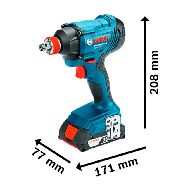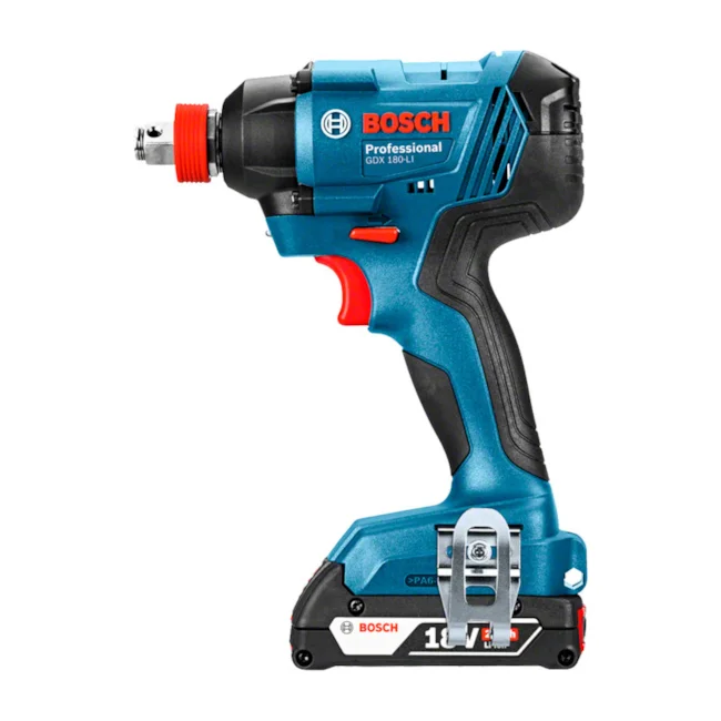 A chave de Impacto a bateria Bosch GDX 180-LI, 18V, possui exclusivo sistema Bosch com mandril 2 em 1: 1/4" hexagonal e 1/2" quadrado. Vem com sistema de proteção da bateria que protege as células evitando superaquecimento, garantindo maior durabilidade da sua ferramenta. Além disso, com a chave de impacto a bateria Bosch GDX 180-LI você tem mais produtividade com maior rotação, torque e impactos por minuto. Ideal para telhadistas, montadores de estruturas metálicas, construtoras, carpinteiros, indústrias, oficinas