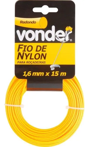 FIO DE NYLON 1,6MM ROLO C/ 15 MTS — VONDER - Medidas em milímetros: 1,6 mm - Aplicação conforme manual do fabricante - Construção robusta para maior vida útil - Conteúdo da embalagem: 1 peça/unidade