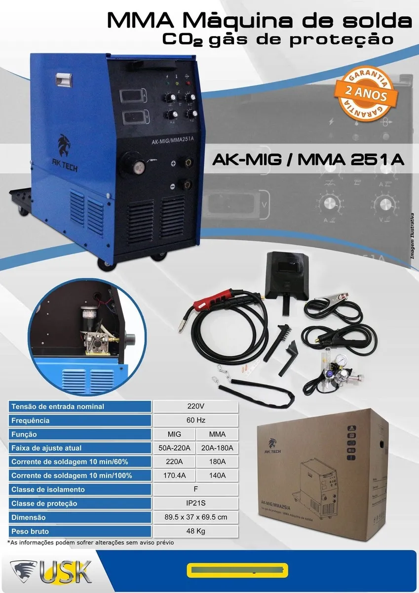 MMA Máquina de solda CO2 gás de proteção AK-MIG/MMA 251A - 220v