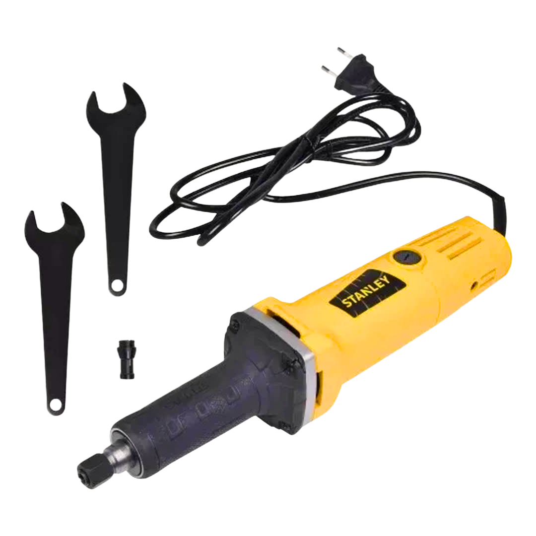 Retificadeira Stanley 1/4” 500W STEL861 220V - Ideal para trabalhos de desbastes. Características Gerais do Produto: • Velocidade (RPM): 30.000 RPM; • Pinça: 1/4” (6,35mm); • Eixo: M15; • Capacidade da Ponta: 25mm; • Potência: 500W; • Peso (Gr): 1800;